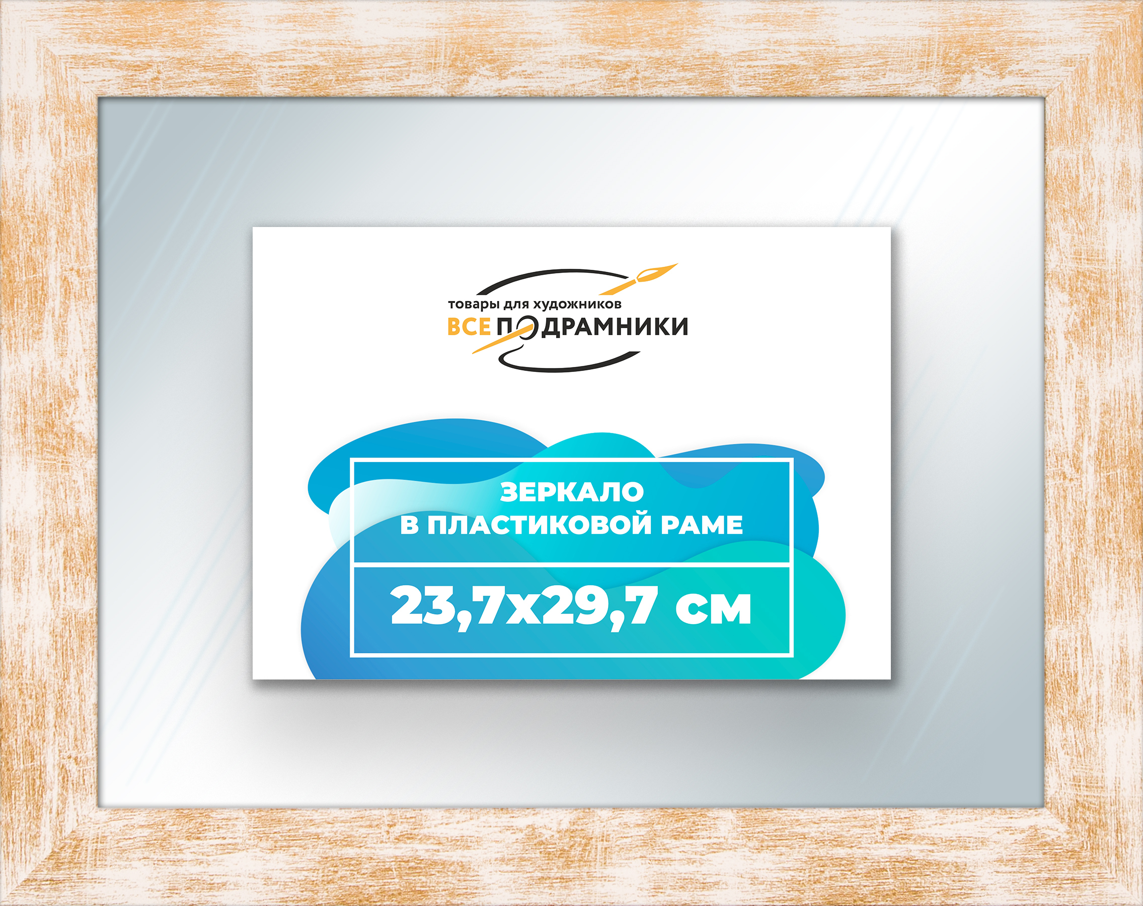 Наше зеркало настенное в раме — идеальный выбор для создания уюта и функциональности. Изготовлено из экологически чистого первичного полистирола высшей категории. Противоосколочная пленка на задней стороне защищает от разлета осколков. Каждое зеркало в раме тщательно очищено — никаких отпечатков, разводов или пыли. Ручная сборка гарантирует качество и внимание к деталям. Подходит для прихожей, ванной, спальни, офиса или как зеркало напольное в полный рост. Технические характеристики * Внешний размер в раме: 23.7x29.7 см. * Размер зеркального полотна без рамы: 15.5x21.5 см. * Сечение рамы: 41x15 мм. * Цвет рамы: супер белый. * Профиль рамы: классический. * Форма: Прямоугольная. * Толщина зеркала: 4 мм. Комплектация * Зеркало в пластиковой раме. * Подвесная пластина – 2 шт. * Винты и фурнитура для крепления. * Все для быстрой установки в комплекте. Преимущества зеркала * Экологичность и безопасность: Рама из полистирола без вредных веществ + противоосколочная пленка. * Долговечность: Полотно толщиной 4 мм для четкого отражения и прочности. * Универсальность: Прямоугольные и квадратные форматы, множество размеров от 10x10 до 100x200 см. * Удобство: Возможность повесить горизонтально или вертикально. * Широкий выбор: Разные профили и цвета рам. * Идеальный подарок: Для мамы, папы, друзей, коллег на день рождения, Новый год, 8 марта, 23 февраля, свадьбу, новоселье. Где использовать зеркало * Зеркало в прихожую: Для проверки образа перед выходом. * Зеркало для ванной: Устойчиво к влаге. * Зеркало в гостиную или спальню: Декоративный акцент, расширяющий пространство. * Зеркало в офис: Для комфортной и стильной атмосферы. * Зеркало напольное в полный рост: Идеально для примерки одежды. * Зеркало декоративное впишется в любой интерьер — от классики до лофта. Производство * Страна: Россия, Санкт-Петербург. * Качество: Высококачественные материалы, ручная сборка, строгие стандарты. Размеры и варианты Широкий выбор зеркал настенных и напольных: прямоугольные и квадратные, множество размеров от 10x10 до 100x200 см, разные профили и цвета рам. Напишите нам в чат, и мы поможем подобрать зеркало, раму и изготовим любой размер по вашим пожеланиям. Найдите свое идеальное зеркало для интерьера.
