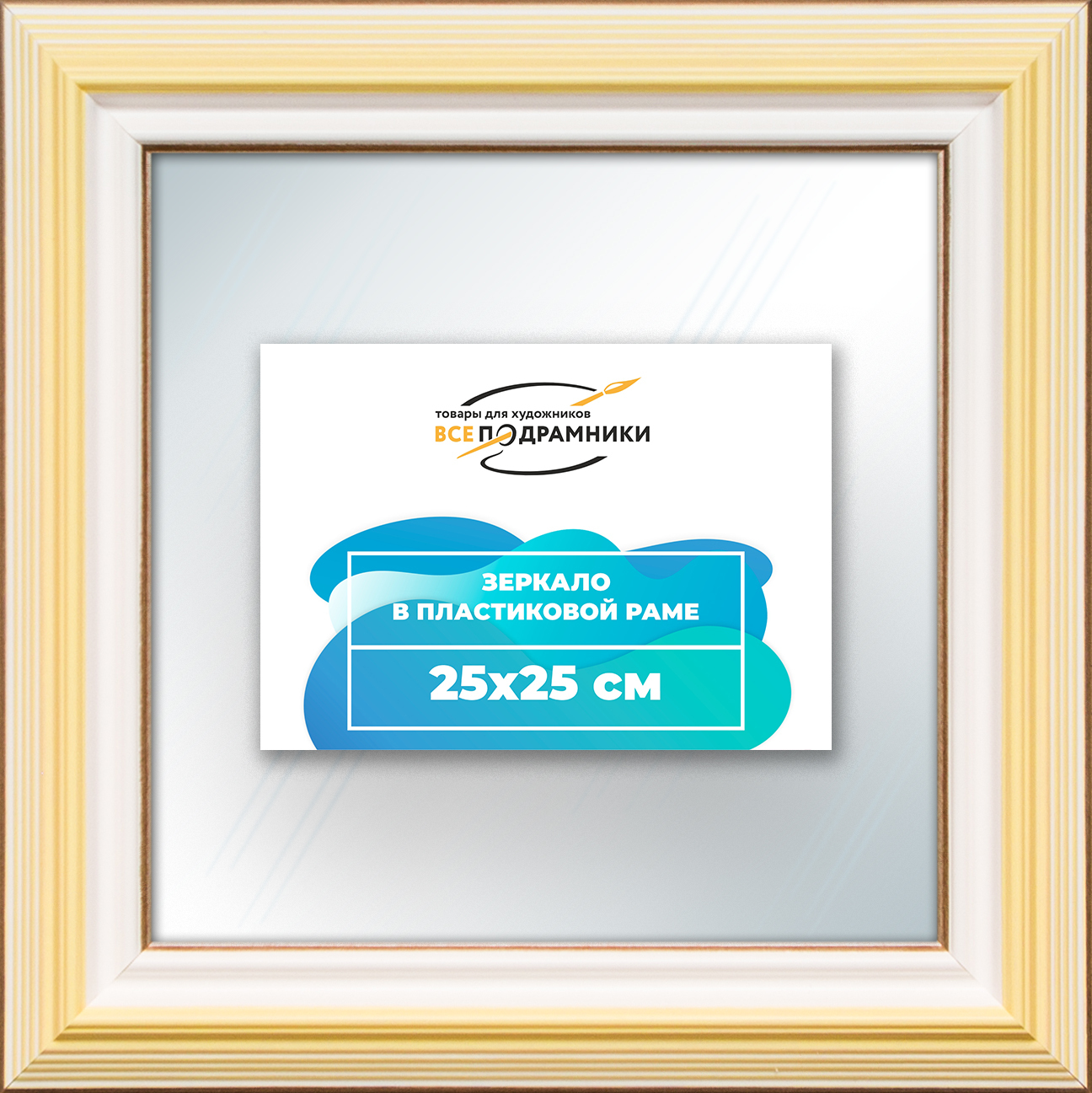 Наше зеркало настенное в раме — идеальный выбор для создания уюта и функциональности. Изготовлено из экологически чистого первичного полистирола высшей категории. Противоосколочная пленка на задней стороне защищает от разлета осколков. Каждое зеркало в раме тщательно очищено — никаких отпечатков, разводов или пыли. Ручная сборка гарантирует качество и внимание к деталям. Подходит для прихожей, ванной, спальни, офиса или как зеркало напольное в полный рост. Технические характеристики * Внешний размер в раме: 25x25.0 см. * Размер зеркального полотна без рамы: 17.2x17.2 см. * Сечение рамы: 39x22 мм. * Цвет рамы: желтый. * Профиль рамы: классический. * Форма: Квадратная. * Толщина зеркала: 4 мм. Комплектация * Зеркало в пластиковой раме. * Подвесная пластина – 2 шт. * Винты и фурнитура для крепления. * Все для быстрой установки в комплекте. Преимущества зеркала * Экологичность и безопасность: Рама из полистирола без вредных веществ + противоосколочная пленка. * Долговечность: Полотно толщиной 4 мм для четкого отражения и прочности. * Универсальность: Прямоугольные и квадратные форматы, множество размеров от 10x10 до 100x200 см. * Удобство: Возможность повесить горизонтально или вертикально. * Широкий выбор: Разные профили и цвета рам. * Идеальный подарок: Для мамы, папы, друзей, коллег на день рождения, Новый год, 8 марта, 23 февраля, свадьбу, новоселье. Где использовать зеркало * Зеркало в прихожую: Для проверки образа перед выходом. * Зеркало для ванной: Устойчиво к влаге. * Зеркало в гостиную или спальню: Декоративный акцент, расширяющий пространство. * Зеркало в офис: Для комфортной и стильной атмосферы. * Зеркало напольное в полный рост: Идеально для примерки одежды. * Зеркало декоративное впишется в любой интерьер — от классики до лофта. Производство * Страна: Россия, Санкт-Петербург. * Качество: Высококачественные материалы, ручная сборка, строгие стандарты. Размеры и варианты Широкий выбор зеркал настенных и напольных: прямоугольные и квадратные, множество размеров от 10x10 до 100x200 см, разные профили и цвета рам. Напишите нам в чат, и мы поможем подобрать зеркало, раму и изготовим любой размер по вашим пожеланиям. Найдите свое идеальное зеркало для интерьера.