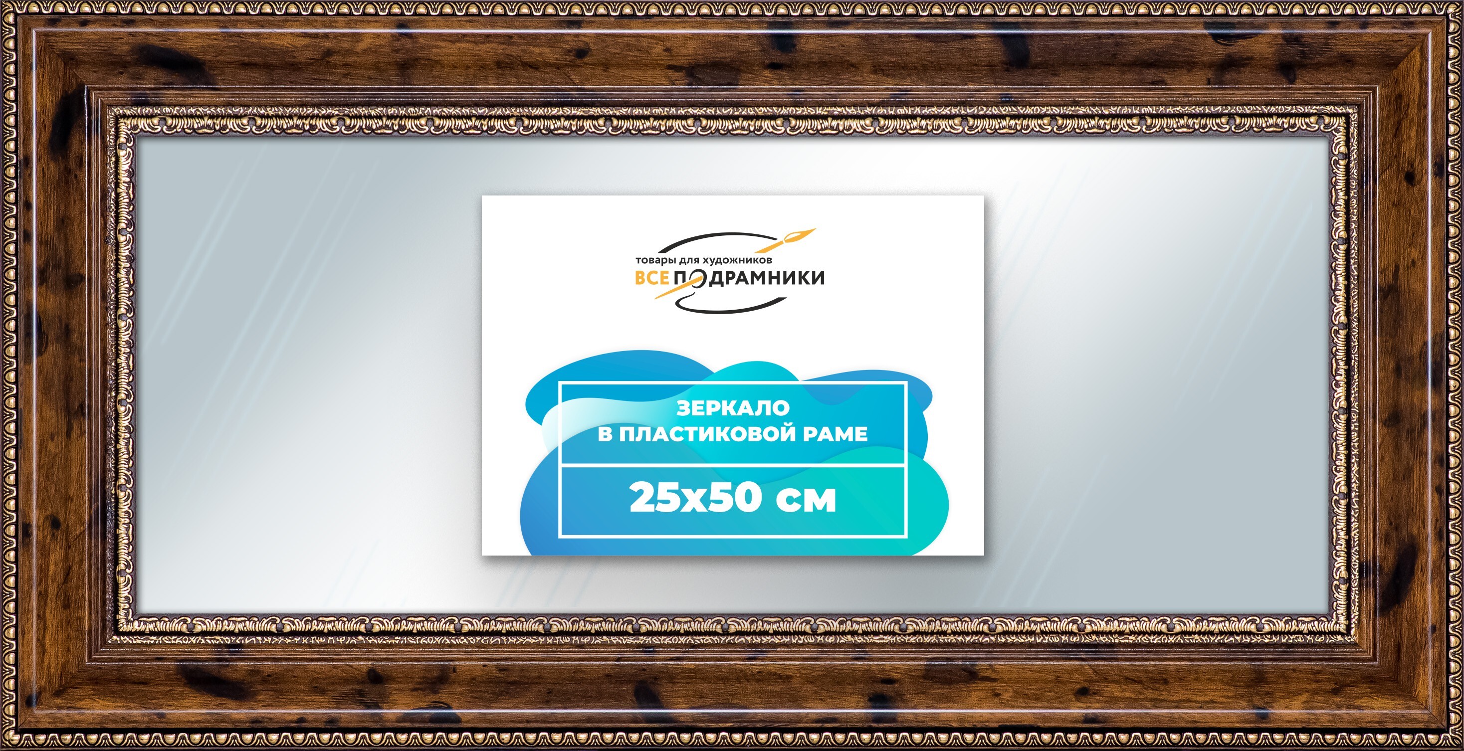 Наше зеркало настенное в раме — идеальный выбор для создания уюта и функциональности. Изготовлено из экологически чистого первичного полистирола высшей категории. Противоосколочная пленка на задней стороне защищает от разлета осколков. Каждое зеркало в раме тщательно очищено — никаких отпечатков, разводов или пыли. Ручная сборка гарантирует качество и внимание к деталям. Подходит для прихожей, ванной, спальни, офиса или как зеркало напольное в полный рост. Технические характеристики * Внешний размер в раме: 25x50.0 см. * Размер зеркального полотна без рамы: 13.6x38.6 см. * Сечение рамы: 57x26 мм. * Цвет рамы: коричневый. * Профиль рамы: классический. * Форма: Прямоугольная. * Толщина зеркала: 4 мм. Комплектация * Зеркало в пластиковой раме. * Подвесная пластина – 2 шт. * Винты и фурнитура для крепления. * Все для быстрой установки в комплекте. Преимущества зеркала * Экологичность и безопасность: Рама из полистирола без вредных веществ + противоосколочная пленка. * Долговечность: Полотно толщиной 4 мм для четкого отражения и прочности. * Универсальность: Прямоугольные и квадратные форматы, множество размеров от 10x10 до 100x200 см. * Удобство: Возможность повесить горизонтально или вертикально. * Широкий выбор: Разные профили и цвета рам. * Идеальный подарок: Для мамы, папы, друзей, коллег на день рождения, Новый год, 8 марта, 23 февраля, свадьбу, новоселье. Где использовать зеркало * Зеркало в прихожую: Для проверки образа перед выходом. * Зеркало для ванной: Устойчиво к влаге. * Зеркало в гостиную или спальню: Декоративный акцент, расширяющий пространство. * Зеркало в офис: Для комфортной и стильной атмосферы. * Зеркало напольное в полный рост: Идеально для примерки одежды. * Зеркало декоративное впишется в любой интерьер — от классики до лофта. Производство * Страна: Россия, Санкт-Петербург. * Качество: Высококачественные материалы, ручная сборка, строгие стандарты. Размеры и варианты Широкий выбор зеркал настенных и напольных: прямоугольные и квадратные, множество размеров от 10x10 до 100x200 см, разные профили и цвета рам. Напишите нам в чат, и мы поможем подобрать зеркало, раму и изготовим любой размер по вашим пожеланиям. Найдите свое идеальное зеркало для интерьера.