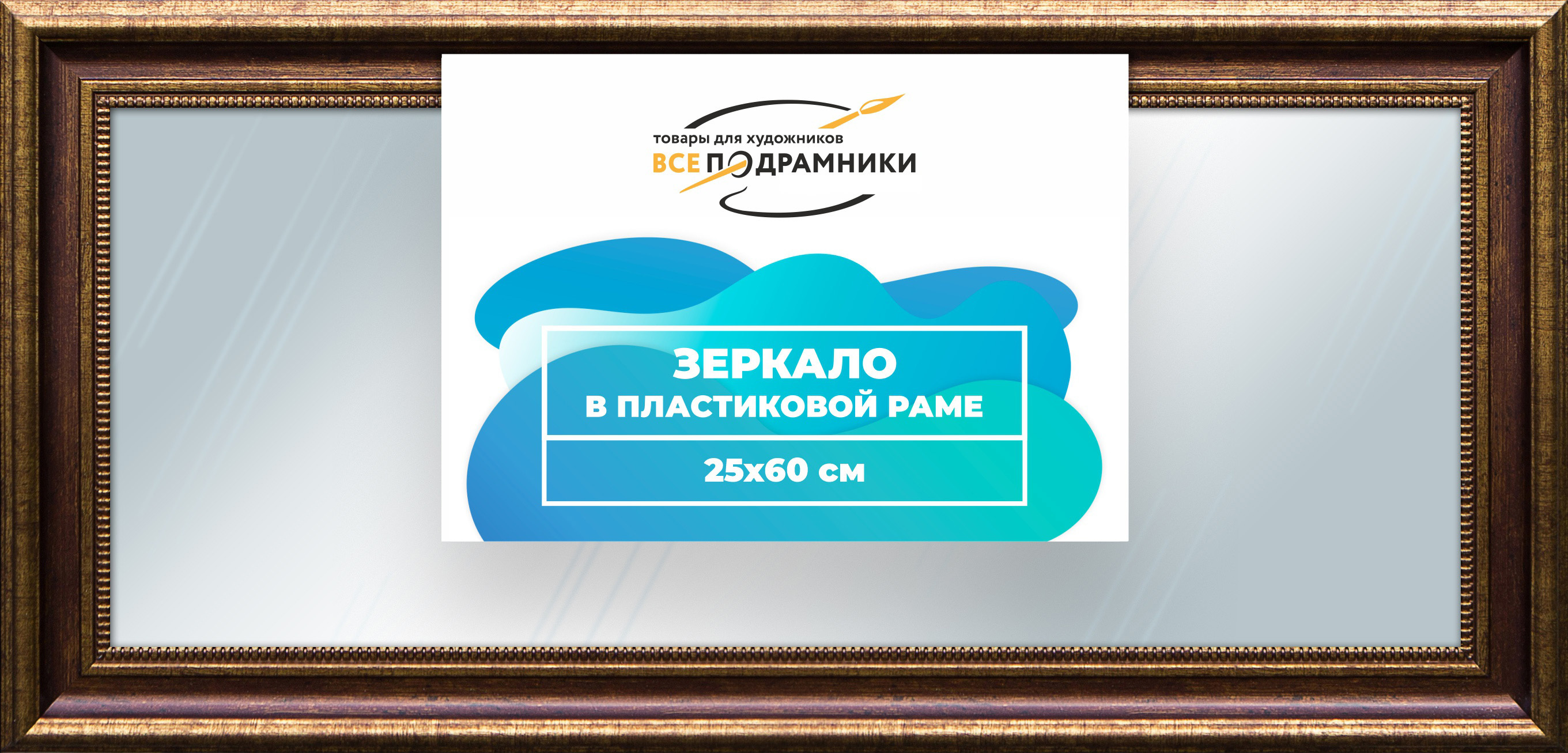 Наше зеркало настенное в раме — идеальный выбор для создания уюта и функциональности. Изготовлено из экологически чистого первичного полистирола высшей категории. Противоосколочная пленка на задней стороне защищает от разлета осколков. Каждое зеркало в раме тщательно очищено — никаких отпечатков, разводов или пыли. Ручная сборка гарантирует качество и внимание к деталям. Подходит для прихожей, ванной, спальни, офиса или как зеркало напольное в полный рост. Технические характеристики * Внешний размер в раме: 25x60.0 см. * Размер зеркального полотна без рамы: 15x50.0 см. * Сечение рамы: 50x26 мм. * Цвет рамы: темно-коричневый. * Профиль рамы: классический. * Форма: Прямоугольная. * Толщина зеркала: 4 мм. Комплектация * Зеркало в пластиковой раме. * Подвесная пластина – 2 шт. * Винты и фурнитура для крепления. * Все для быстрой установки в комплекте. Преимущества зеркала * Экологичность и безопасность: Рама из полистирола без вредных веществ + противоосколочная пленка. * Долговечность: Полотно толщиной 4 мм для четкого отражения и прочности. * Универсальность: Прямоугольные и квадратные форматы, множество размеров от 10x10 до 100x200 см. * Удобство: Возможность повесить горизонтально или вертикально. * Широкий выбор: Разные профили и цвета рам. * Идеальный подарок: Для мамы, папы, друзей, коллег на день рождения, Новый год, 8 марта, 23 февраля, свадьбу, новоселье. Где использовать зеркало * Зеркало в прихожую: Для проверки образа перед выходом. * Зеркало для ванной: Устойчиво к влаге. * Зеркало в гостиную или спальню: Декоративный акцент, расширяющий пространство. * Зеркало в офис: Для комфортной и стильной атмосферы. * Зеркало напольное в полный рост: Идеально для примерки одежды. * Зеркало декоративное впишется в любой интерьер — от классики до лофта. Производство * Страна: Россия, Санкт-Петербург. * Качество: Высококачественные материалы, ручная сборка, строгие стандарты. Размеры и варианты Широкий выбор зеркал настенных и напольных: прямоугольные и квадратные, множество размеров от 10x10 до 100x200 см, разные профили и цвета рам. Напишите нам в чат, и мы поможем подобрать зеркало, раму и изготовим любой размер по вашим пожеланиям. Найдите свое идеальное зеркало для интерьера.
