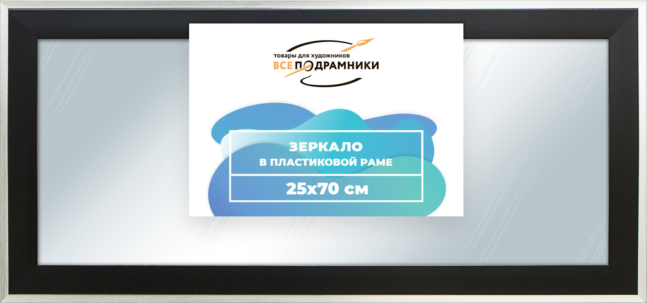 Наше зеркало настенное в раме — идеальный выбор для создания уюта и функциональности. Изготовлено из экологически чистого первичного полистирола высшей категории. Противоосколочная пленка на задней стороне защищает от разлета осколков. Каждое зеркало в раме тщательно очищено — никаких отпечатков, разводов или пыли. Ручная сборка гарантирует качество и внимание к деталям. Подходит для прихожей, ванной, спальни, офиса или как зеркало напольное в полный рост. Технические характеристики * Внешний размер в раме: 25x70.0 см. * Размер зеркального полотна без рамы: 18x63.0 см. * Сечение рамы: 35x15 мм. * Цвет рамы: черный. * Профиль рамы: классический. * Форма: Прямоугольная. * Толщина зеркала: 4 мм. Комплектация * Зеркало в пластиковой раме. * Подвесная пластина – 2 шт. * Винты и фурнитура для крепления. * Все для быстрой установки в комплекте. Преимущества зеркала * Экологичность и безопасность: Рама из полистирола без вредных веществ + противоосколочная пленка. * Долговечность: Полотно толщиной 4 мм для четкого отражения и прочности. * Универсальность: Прямоугольные и квадратные форматы, множество размеров от 10x10 до 100x200 см. * Удобство: Возможность повесить горизонтально или вертикально. * Широкий выбор: Разные профили и цвета рам. * Идеальный подарок: Для мамы, папы, друзей, коллег на день рождения, Новый год, 8 марта, 23 февраля, свадьбу, новоселье. Где использовать зеркало * Зеркало в прихожую: Для проверки образа перед выходом. * Зеркало для ванной: Устойчиво к влаге. * Зеркало в гостиную или спальню: Декоративный акцент, расширяющий пространство. * Зеркало в офис: Для комфортной и стильной атмосферы. * Зеркало напольное в полный рост: Идеально для примерки одежды. * Зеркало декоративное впишется в любой интерьер — от классики до лофта. Производство * Страна: Россия, Санкт-Петербург. * Качество: Высококачественные материалы, ручная сборка, строгие стандарты. Размеры и варианты Широкий выбор зеркал настенных и напольных: прямоугольные и квадратные, множество размеров от 10x10 до 100x200 см, разные профили и цвета рам. Напишите нам в чат, и мы поможем подобрать зеркало, раму и изготовим любой размер по вашим пожеланиям. Найдите свое идеальное зеркало для интерьера.
