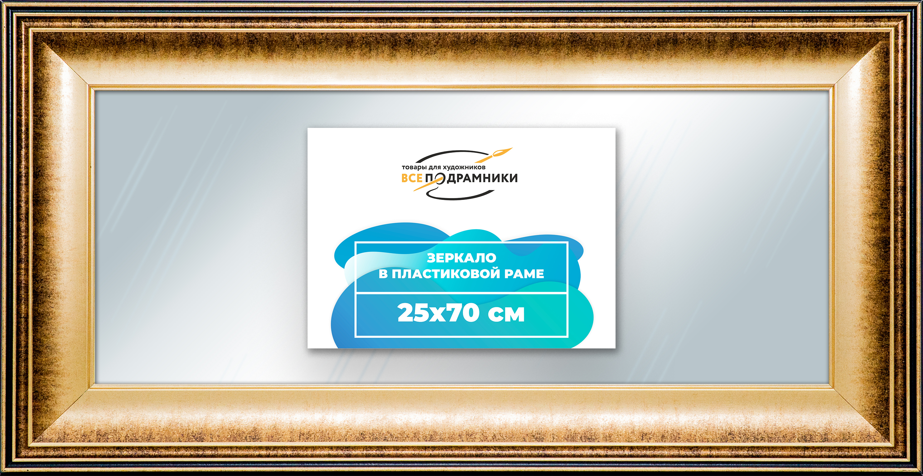 Наше зеркало настенное в раме — идеальный выбор для создания уюта и функциональности. Изготовлено из экологически чистого первичного полистирола высшей категории. Противоосколочная пленка на задней стороне защищает от разлета осколков. Каждое зеркало в раме тщательно очищено — никаких отпечатков, разводов или пыли. Ручная сборка гарантирует качество и внимание к деталям. Подходит для прихожей, ванной, спальни, офиса или как зеркало напольное в полный рост. Технические характеристики * Внешний размер в раме: 25x70.0 см. * Размер зеркального полотна без рамы: 14.4x59.4 см. * Сечение рамы: 53x23 мм. * Цвет рамы: коричневый. * Профиль рамы: классический. * Форма: Прямоугольная. * Толщина зеркала: 4 мм. Комплектация * Зеркало в пластиковой раме. * Подвесная пластина – 2 шт. * Винты и фурнитура для крепления. * Все для быстрой установки в комплекте. Преимущества зеркала * Экологичность и безопасность: Рама из полистирола без вредных веществ + противоосколочная пленка. * Долговечность: Полотно толщиной 4 мм для четкого отражения и прочности. * Универсальность: Прямоугольные и квадратные форматы, множество размеров от 10x10 до 100x200 см. * Удобство: Возможность повесить горизонтально или вертикально. * Широкий выбор: Разные профили и цвета рам. * Идеальный подарок: Для мамы, папы, друзей, коллег на день рождения, Новый год, 8 марта, 23 февраля, свадьбу, новоселье. Где использовать зеркало * Зеркало в прихожую: Для проверки образа перед выходом. * Зеркало для ванной: Устойчиво к влаге. * Зеркало в гостиную или спальню: Декоративный акцент, расширяющий пространство. * Зеркало в офис: Для комфортной и стильной атмосферы. * Зеркало напольное в полный рост: Идеально для примерки одежды. * Зеркало декоративное впишется в любой интерьер — от классики до лофта. Производство * Страна: Россия, Санкт-Петербург. * Качество: Высококачественные материалы, ручная сборка, строгие стандарты. Размеры и варианты Широкий выбор зеркал настенных и напольных: прямоугольные и квадратные, множество размеров от 10x10 до 100x200 см, разные профили и цвета рам. Напишите нам в чат, и мы поможем подобрать зеркало, раму и изготовим любой размер по вашим пожеланиям. Найдите свое идеальное зеркало для интерьера.