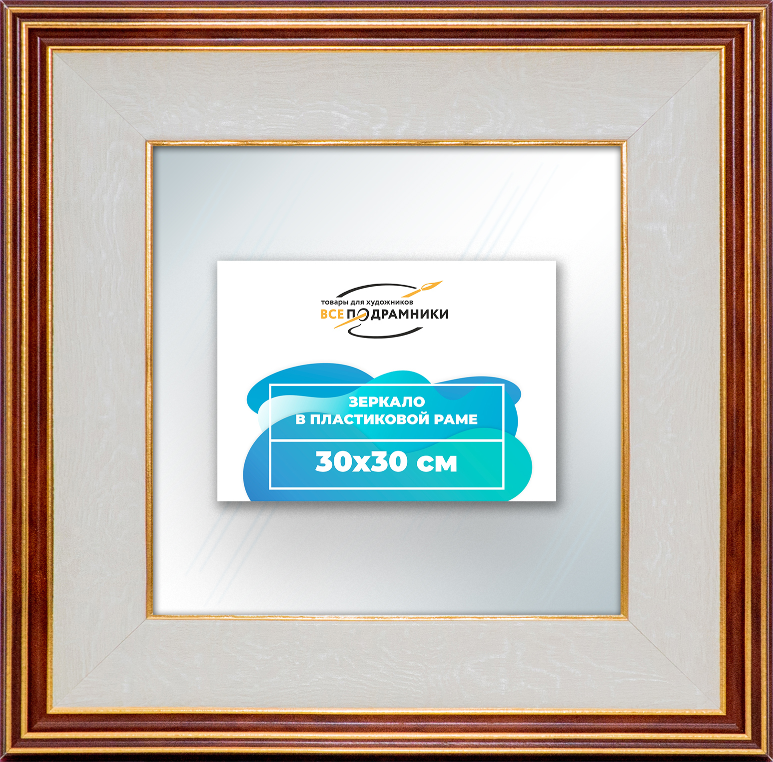 Наше зеркало настенное в раме — идеальный выбор для создания уюта и функциональности. Изготовлено из экологически чистого первичного полистирола высшей категории. Противоосколочная пленка на задней стороне защищает от разлета осколков. Каждое зеркало в раме тщательно очищено — никаких отпечатков, разводов или пыли. Ручная сборка гарантирует качество и внимание к деталям. Подходит для прихожей, ванной, спальни, офиса или как зеркало напольное в полный рост. Технические характеристики * Внешний размер в раме: 30x30.0 см. * Размер зеркального полотна без рамы: 19.4x19.4 см. * Сечение рамы: 53x23 мм. * Цвет рамы: бежевый. * Профиль рамы: классический. * Форма: Квадратная. * Толщина зеркала: 4 мм. Комплектация * Зеркало в пластиковой раме. * Подвесная пластина – 2 шт. * Винты и фурнитура для крепления. * Все для быстрой установки в комплекте. Преимущества зеркала * Экологичность и безопасность: Рама из полистирола без вредных веществ + противоосколочная пленка. * Долговечность: Полотно толщиной 4 мм для четкого отражения и прочности. * Универсальность: Прямоугольные и квадратные форматы, множество размеров от 10x10 до 100x200 см. * Удобство: Возможность повесить горизонтально или вертикально. * Широкий выбор: Разные профили и цвета рам. * Идеальный подарок: Для мамы, папы, друзей, коллег на день рождения, Новый год, 8 марта, 23 февраля, свадьбу, новоселье. Где использовать зеркало * Зеркало в прихожую: Для проверки образа перед выходом. * Зеркало для ванной: Устойчиво к влаге. * Зеркало в гостиную или спальню: Декоративный акцент, расширяющий пространство. * Зеркало в офис: Для комфортной и стильной атмосферы. * Зеркало напольное в полный рост: Идеально для примерки одежды. * Зеркало декоративное впишется в любой интерьер — от классики до лофта. Производство * Страна: Россия, Санкт-Петербург. * Качество: Высококачественные материалы, ручная сборка, строгие стандарты. Размеры и варианты Широкий выбор зеркал настенных и напольных: прямоугольные и квадратные, множество размеров от 10x10 до 100x200 см, разные профили и цвета рам. Напишите нам в чат, и мы поможем подобрать зеркало, раму и изготовим любой размер по вашим пожеланиям. Найдите свое идеальное зеркало для интерьера.