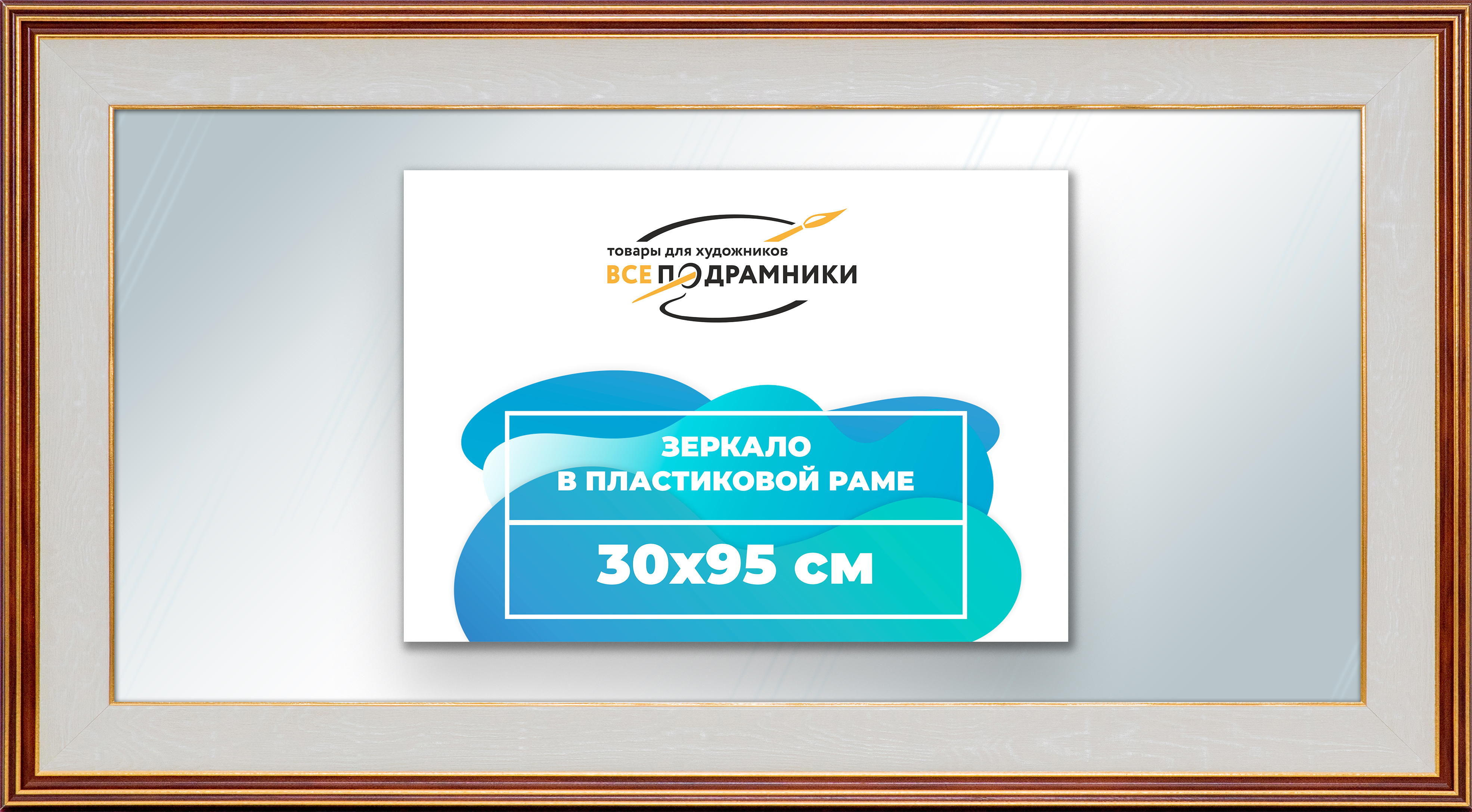 Наше зеркало настенное в раме — идеальный выбор для создания уюта и функциональности. Изготовлено из экологически чистого первичного полистирола высшей категории. Противоосколочная пленка на задней стороне защищает от разлета осколков. Каждое зеркало в раме тщательно очищено — никаких отпечатков, разводов или пыли. Ручная сборка гарантирует качество и внимание к деталям. Подходит для прихожей, ванной, спальни, офиса или как зеркало напольное в полный рост. Технические характеристики * Внешний размер в раме: 30x95.0 см. * Размер зеркального полотна без рамы: 19.4x84.4 см. * Сечение рамы: 53x23 мм. * Цвет рамы: бежевый. * Профиль рамы: классический. * Форма: Прямоугольная. * Толщина зеркала: 4 мм. Комплектация * Зеркало в пластиковой раме. * Подвесная пластина – 2 шт. * Винты и фурнитура для крепления. * Все для быстрой установки в комплекте. Преимущества зеркала * Экологичность и безопасность: Рама из полистирола без вредных веществ + противоосколочная пленка. * Долговечность: Полотно толщиной 4 мм для четкого отражения и прочности. * Универсальность: Прямоугольные и квадратные форматы, множество размеров от 10x10 до 100x200 см. * Удобство: Возможность повесить горизонтально или вертикально. * Широкий выбор: Разные профили и цвета рам. * Идеальный подарок: Для мамы, папы, друзей, коллег на день рождения, Новый год, 8 марта, 23 февраля, свадьбу, новоселье. Где использовать зеркало * Зеркало в прихожую: Для проверки образа перед выходом. * Зеркало для ванной: Устойчиво к влаге. * Зеркало в гостиную или спальню: Декоративный акцент, расширяющий пространство. * Зеркало в офис: Для комфортной и стильной атмосферы. * Зеркало напольное в полный рост: Идеально для примерки одежды. * Зеркало декоративное впишется в любой интерьер — от классики до лофта. Производство * Страна: Россия, Санкт-Петербург. * Качество: Высококачественные материалы, ручная сборка, строгие стандарты. Размеры и варианты Широкий выбор зеркал настенных и напольных: прямоугольные и квадратные, множество размеров от 10x10 до 100x200 см, разные профили и цвета рам. Напишите нам в чат, и мы поможем подобрать зеркало, раму и изготовим любой размер по вашим пожеланиям. Найдите свое идеальное зеркало для интерьера.