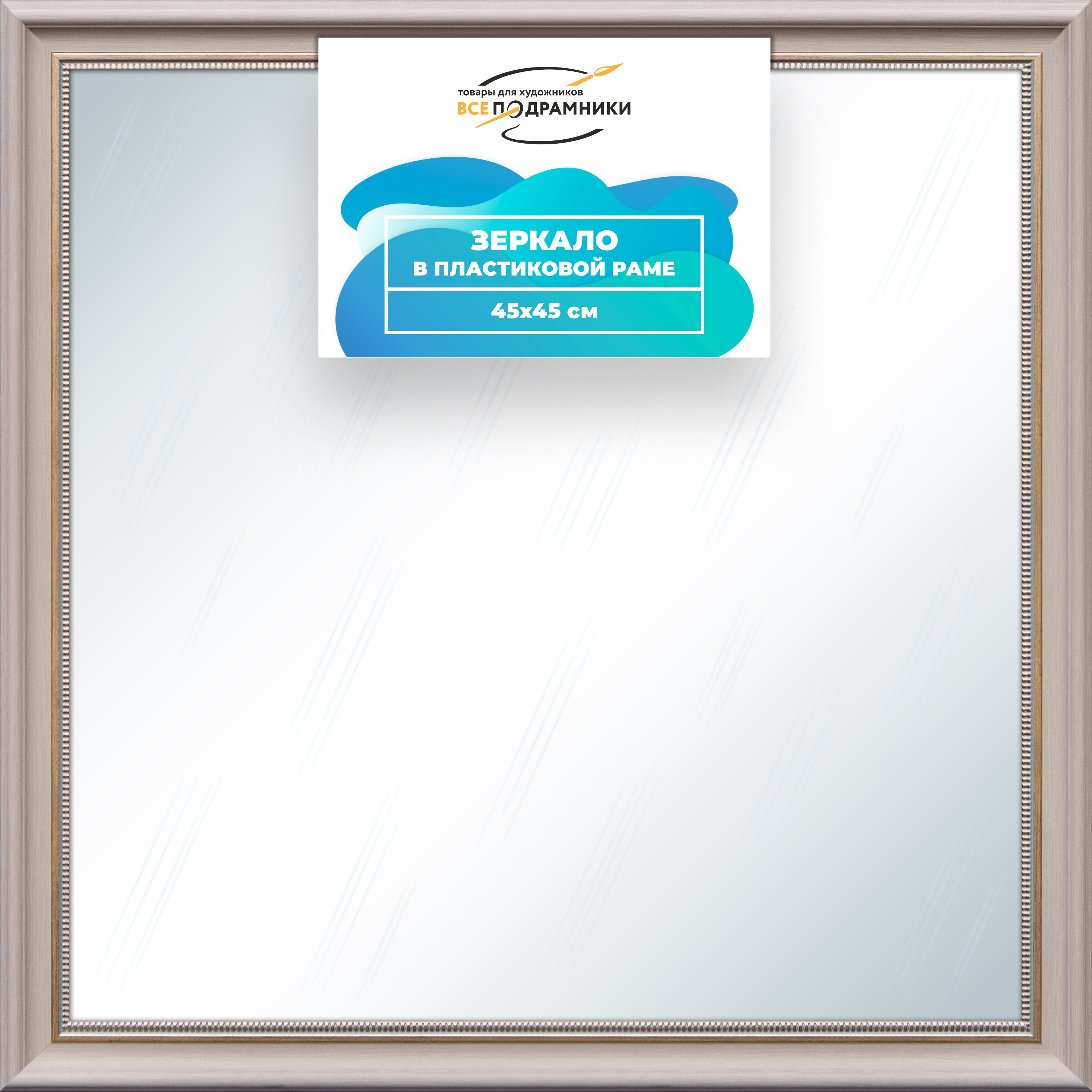 Наше зеркало настенное в раме — идеальный выбор для создания уюта и функциональности. Изготовлено из экологически чистого первичного полистирола высшей категории. Противоосколочная пленка на задней стороне защищает от разлета осколков. Каждое зеркало в раме тщательно очищено — никаких отпечатков, разводов или пыли. Ручная сборка гарантирует качество и внимание к деталям. Подходит для прихожей, ванной, спальни, офиса или как зеркало напольное в полный рост. Технические характеристики * Внешний размер в раме: 45x45.0 см. * Размер зеркального полотна без рамы: 35x35.0 см. * Сечение рамы: 50x26 мм. * Цвет рамы: коричневый. * Профиль рамы: классический. * Форма: Квадратная. * Толщина зеркала: 4 мм. Комплектация * Зеркало в пластиковой раме. * Подвесная пластина – 2 шт. * Винты и фурнитура для крепления. * Все для быстрой установки в комплекте. Преимущества зеркала * Экологичность и безопасность: Рама из полистирола без вредных веществ + противоосколочная пленка. * Долговечность: Полотно толщиной 4 мм для четкого отражения и прочности. * Универсальность: Прямоугольные и квадратные форматы, множество размеров от 10x10 до 100x200 см. * Удобство: Возможность повесить горизонтально или вертикально. * Широкий выбор: Разные профили и цвета рам. * Идеальный подарок: Для мамы, папы, друзей, коллег на день рождения, Новый год, 8 марта, 23 февраля, свадьбу, новоселье. Где использовать зеркало * Зеркало в прихожую: Для проверки образа перед выходом. * Зеркало для ванной: Устойчиво к влаге. * Зеркало в гостиную или спальню: Декоративный акцент, расширяющий пространство. * Зеркало в офис: Для комфортной и стильной атмосферы. * Зеркало напольное в полный рост: Идеально для примерки одежды. * Зеркало декоративное впишется в любой интерьер — от классики до лофта. Производство * Страна: Россия, Санкт-Петербург. * Качество: Высококачественные материалы, ручная сборка, строгие стандарты. Размеры и варианты Широкий выбор зеркал настенных и напольных: прямоугольные и квадратные, множество размеров от 10x10 до 100x200 см, разные профили и цвета рам. Напишите нам в чат, и мы поможем подобрать зеркало, раму и изготовим любой размер по вашим пожеланиям. Найдите свое идеальное зеркало для интерьера.