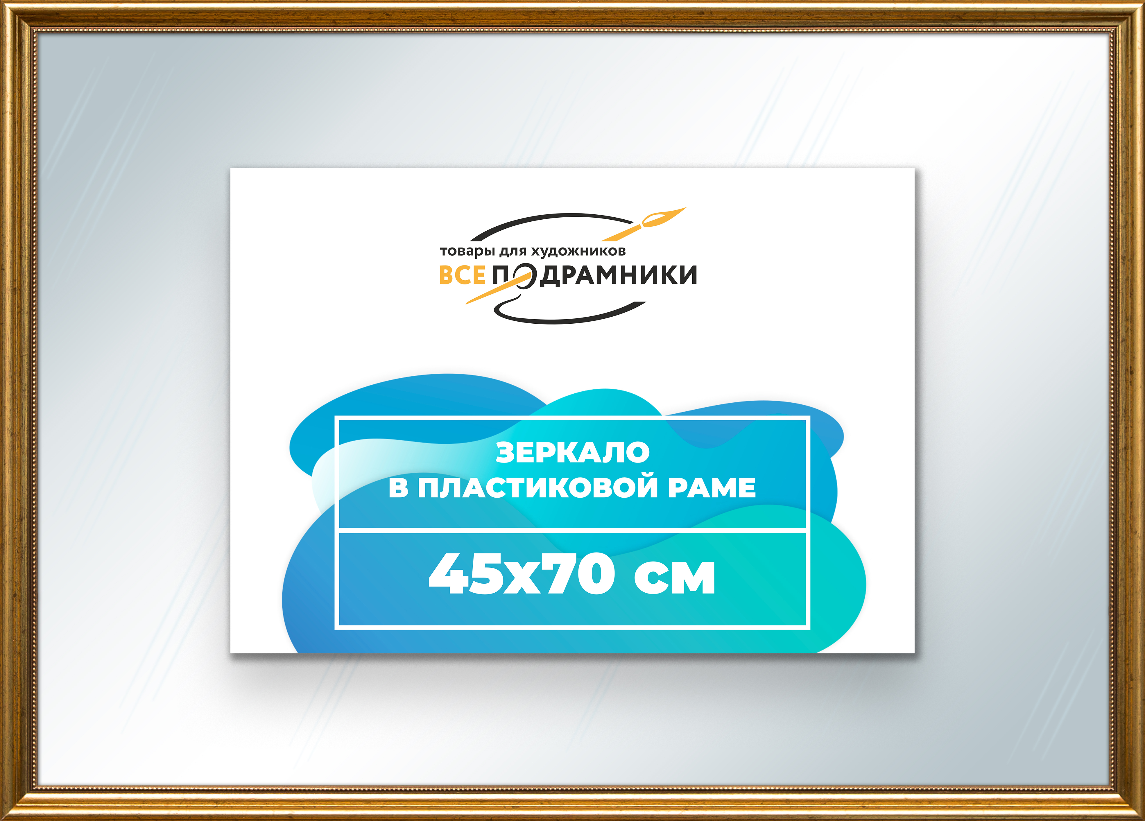 Наше зеркало настенное в раме — идеальный выбор для создания уюта и функциональности. Изготовлено из экологически чистого первичного полистирола высшей категории. Противоосколочная пленка на задней стороне защищает от разлета осколков. Каждое зеркало в раме тщательно очищено — никаких отпечатков, разводов или пыли. Ручная сборка гарантирует качество и внимание к деталям. Подходит для прихожей, ванной, спальни, офиса или как зеркало напольное в полный рост. Технические характеристики * Внешний размер в раме: 45x70.0 см. * Размер зеркального полотна без рамы: 41.2x66.2 см. * Сечение рамы: 19x20 мм. * Цвет рамы: золотистый. * Профиль рамы: классический. * Форма: Прямоугольная. * Толщина зеркала: 4 мм. Комплектация * Зеркало в пластиковой раме. * Подвесная пластина – 2 шт. * Винты и фурнитура для крепления. * Все для быстрой установки в комплекте. Преимущества зеркала * Экологичность и безопасность: Рама из полистирола без вредных веществ + противоосколочная пленка. * Долговечность: Полотно толщиной 4 мм для четкого отражения и прочности. * Универсальность: Прямоугольные и квадратные форматы, множество размеров от 10x10 до 100x200 см. * Удобство: Возможность повесить горизонтально или вертикально. * Широкий выбор: Разные профили и цвета рам. * Идеальный подарок: Для мамы, папы, друзей, коллег на день рождения, Новый год, 8 марта, 23 февраля, свадьбу, новоселье. Где использовать зеркало * Зеркало в прихожую: Для проверки образа перед выходом. * Зеркало для ванной: Устойчиво к влаге. * Зеркало в гостиную или спальню: Декоративный акцент, расширяющий пространство. * Зеркало в офис: Для комфортной и стильной атмосферы. * Зеркало напольное в полный рост: Идеально для примерки одежды. * Зеркало декоративное впишется в любой интерьер — от классики до лофта. Производство * Страна: Россия, Санкт-Петербург. * Качество: Высококачественные материалы, ручная сборка, строгие стандарты. Размеры и варианты Широкий выбор зеркал настенных и напольных: прямоугольные и квадратные, множество размеров от 10x10 до 100x200 см, разные профили и цвета рам. Напишите нам в чат, и мы поможем подобрать зеркало, раму и изготовим любой размер по вашим пожеланиям. Найдите свое идеальное зеркало для интерьера.