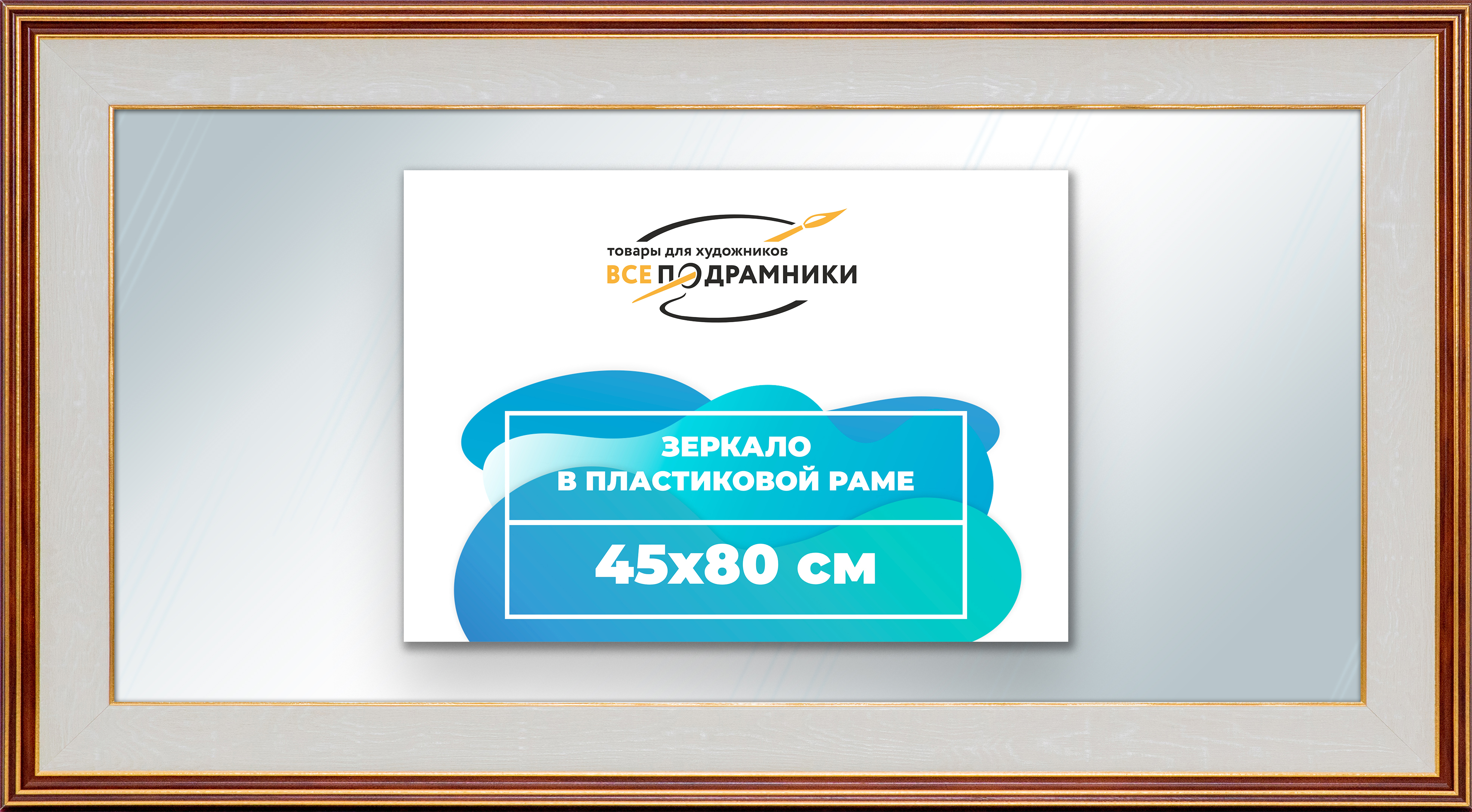 Наше зеркало настенное в раме — идеальный выбор для создания уюта и функциональности. Изготовлено из экологически чистого первичного полистирола высшей категории. Противоосколочная пленка на задней стороне защищает от разлета осколков. Каждое зеркало в раме тщательно очищено — никаких отпечатков, разводов или пыли. Ручная сборка гарантирует качество и внимание к деталям. Подходит для прихожей, ванной, спальни, офиса или как зеркало напольное в полный рост. Технические характеристики * Внешний размер в раме: 45x80.0 см. * Размер зеркального полотна без рамы: 34.4x69.4 см. * Сечение рамы: 53x23 мм. * Цвет рамы: бежевый. * Профиль рамы: классический. * Форма: Прямоугольная. * Толщина зеркала: 4 мм. Комплектация * Зеркало в пластиковой раме. * Подвесная пластина – 2 шт. * Винты и фурнитура для крепления. * Все для быстрой установки в комплекте. Преимущества зеркала * Экологичность и безопасность: Рама из полистирола без вредных веществ + противоосколочная пленка. * Долговечность: Полотно толщиной 4 мм для четкого отражения и прочности. * Универсальность: Прямоугольные и квадратные форматы, множество размеров от 10x10 до 100x200 см. * Удобство: Возможность повесить горизонтально или вертикально. * Широкий выбор: Разные профили и цвета рам. * Идеальный подарок: Для мамы, папы, друзей, коллег на день рождения, Новый год, 8 марта, 23 февраля, свадьбу, новоселье. Где использовать зеркало * Зеркало в прихожую: Для проверки образа перед выходом. * Зеркало для ванной: Устойчиво к влаге. * Зеркало в гостиную или спальню: Декоративный акцент, расширяющий пространство. * Зеркало в офис: Для комфортной и стильной атмосферы. * Зеркало напольное в полный рост: Идеально для примерки одежды. * Зеркало декоративное впишется в любой интерьер — от классики до лофта. Производство * Страна: Россия, Санкт-Петербург. * Качество: Высококачественные материалы, ручная сборка, строгие стандарты. Размеры и варианты Широкий выбор зеркал настенных и напольных: прямоугольные и квадратные, множество размеров от 10x10 до 100x200 см, разные профили и цвета рам. Напишите нам в чат, и мы поможем подобрать зеркало, раму и изготовим любой размер по вашим пожеланиям. Найдите свое идеальное зеркало для интерьера.