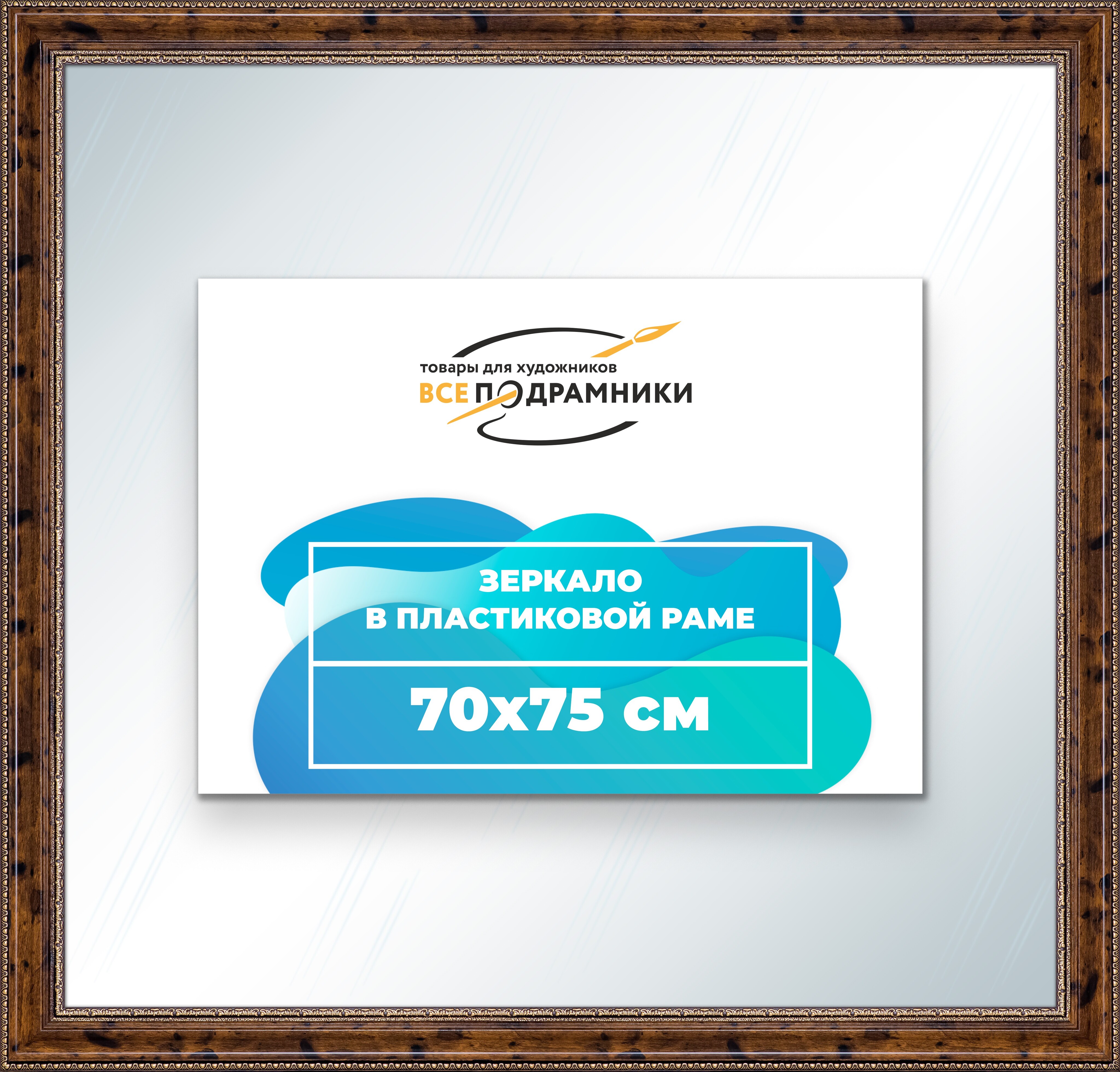 Наше зеркало настенное в раме — идеальный выбор для создания уюта и функциональности. Изготовлено из экологически чистого первичного полистирола высшей категории. Противоосколочная пленка на задней стороне защищает от разлета осколков. Каждое зеркало в раме тщательно очищено — никаких отпечатков, разводов или пыли. Ручная сборка гарантирует качество и внимание к деталям. Подходит для прихожей, ванной, спальни, офиса или как зеркало напольное в полный рост. Технические характеристики * Внешний размер в раме: 70x75.0 см. * Размер зеркального полотна без рамы: 58.6x63.6 см. * Сечение рамы: 57x26 мм. * Цвет рамы: коричневый. * Профиль рамы: классический. * Форма: Прямоугольная. * Толщина зеркала: 4 мм. Комплектация * Зеркало в пластиковой раме. * Подвесная пластина – 2 шт. * Винты и фурнитура для крепления. * Все для быстрой установки в комплекте. Преимущества зеркала * Экологичность и безопасность: Рама из полистирола без вредных веществ + противоосколочная пленка. * Долговечность: Полотно толщиной 4 мм для четкого отражения и прочности. * Универсальность: Прямоугольные и квадратные форматы, множество размеров от 10x10 до 100x200 см. * Удобство: Возможность повесить горизонтально или вертикально. * Широкий выбор: Разные профили и цвета рам. * Идеальный подарок: Для мамы, папы, друзей, коллег на день рождения, Новый год, 8 марта, 23 февраля, свадьбу, новоселье. Где использовать зеркало * Зеркало в прихожую: Для проверки образа перед выходом. * Зеркало для ванной: Устойчиво к влаге. * Зеркало в гостиную или спальню: Декоративный акцент, расширяющий пространство. * Зеркало в офис: Для комфортной и стильной атмосферы. * Зеркало напольное в полный рост: Идеально для примерки одежды. * Зеркало декоративное впишется в любой интерьер — от классики до лофта. Производство * Страна: Россия, Санкт-Петербург. * Качество: Высококачественные материалы, ручная сборка, строгие стандарты. Размеры и варианты Широкий выбор зеркал настенных и напольных: прямоугольные и квадратные, множество размеров от 10x10 до 100x200 см, разные профили и цвета рам. Напишите нам в чат, и мы поможем подобрать зеркало, раму и изготовим любой размер по вашим пожеланиям. Найдите свое идеальное зеркало для интерьера.