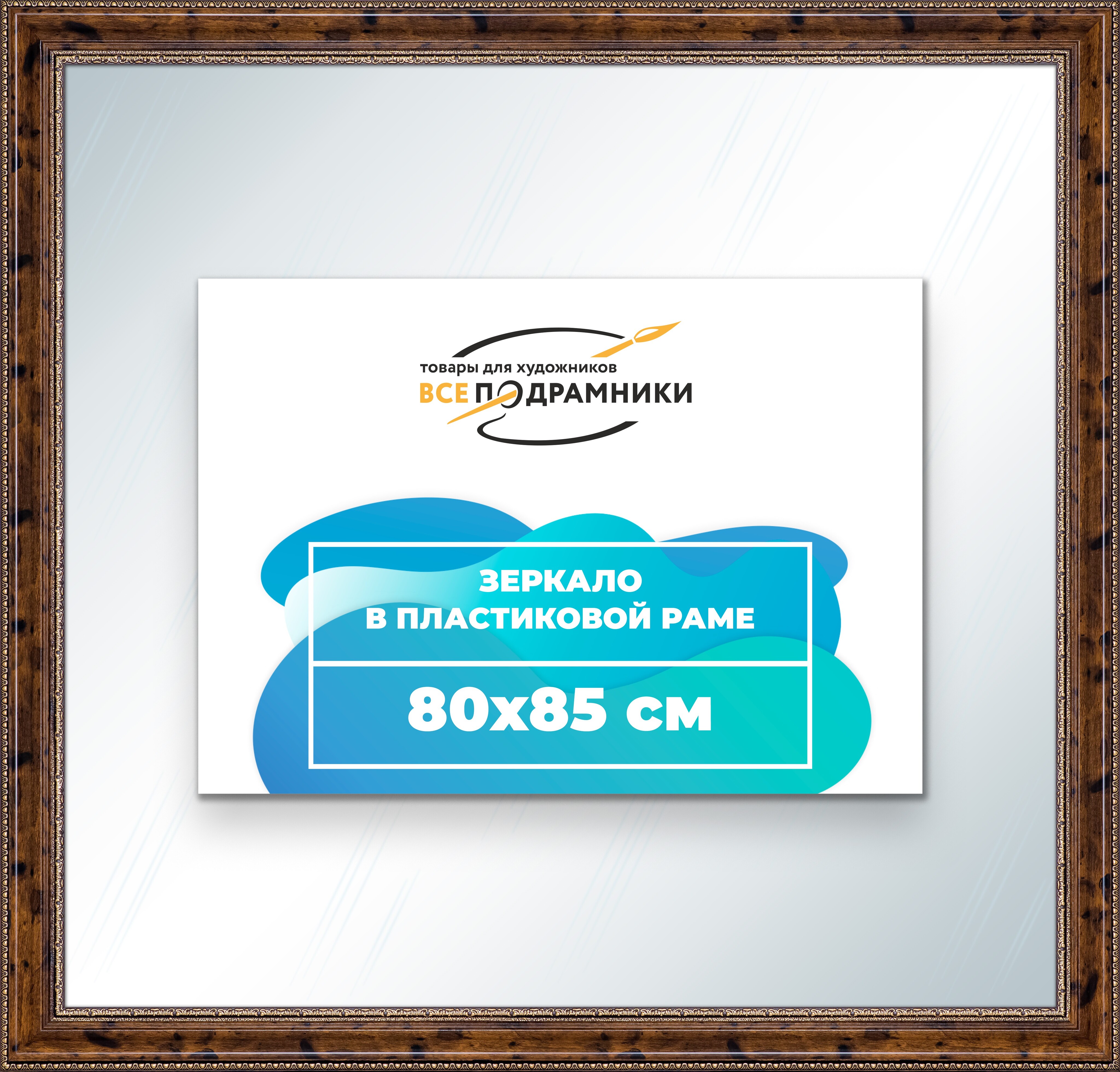Наше зеркало настенное в раме — идеальный выбор для создания уюта и функциональности. Изготовлено из экологически чистого первичного полистирола высшей категории. Противоосколочная пленка на задней стороне защищает от разлета осколков. Каждое зеркало в раме тщательно очищено — никаких отпечатков, разводов или пыли. Ручная сборка гарантирует качество и внимание к деталям. Подходит для прихожей, ванной, спальни, офиса или как зеркало напольное в полный рост. Технические характеристики * Внешний размер в раме: 80x85.0 см. * Размер зеркального полотна без рамы: 68.6x73.6 см. * Сечение рамы: 57x26 мм. * Цвет рамы: коричневый. * Профиль рамы: классический. * Форма: Прямоугольная. * Толщина зеркала: 4 мм. Комплектация * Зеркало в пластиковой раме. * Подвесная пластина – 2 шт. * Винты и фурнитура для крепления. * Все для быстрой установки в комплекте. Преимущества зеркала * Экологичность и безопасность: Рама из полистирола без вредных веществ + противоосколочная пленка. * Долговечность: Полотно толщиной 4 мм для четкого отражения и прочности. * Универсальность: Прямоугольные и квадратные форматы, множество размеров от 10x10 до 100x200 см. * Удобство: Возможность повесить горизонтально или вертикально. * Широкий выбор: Разные профили и цвета рам. * Идеальный подарок: Для мамы, папы, друзей, коллег на день рождения, Новый год, 8 марта, 23 февраля, свадьбу, новоселье. Где использовать зеркало * Зеркало в прихожую: Для проверки образа перед выходом. * Зеркало для ванной: Устойчиво к влаге. * Зеркало в гостиную или спальню: Декоративный акцент, расширяющий пространство. * Зеркало в офис: Для комфортной и стильной атмосферы. * Зеркало напольное в полный рост: Идеально для примерки одежды. * Зеркало декоративное впишется в любой интерьер — от классики до лофта. Производство * Страна: Россия, Санкт-Петербург. * Качество: Высококачественные материалы, ручная сборка, строгие стандарты. Размеры и варианты Широкий выбор зеркал настенных и напольных: прямоугольные и квадратные, множество размеров от 10x10 до 100x200 см, разные профили и цвета рам. Напишите нам в чат, и мы поможем подобрать зеркало, раму и изготовим любой размер по вашим пожеланиям. Найдите свое идеальное зеркало для интерьера.